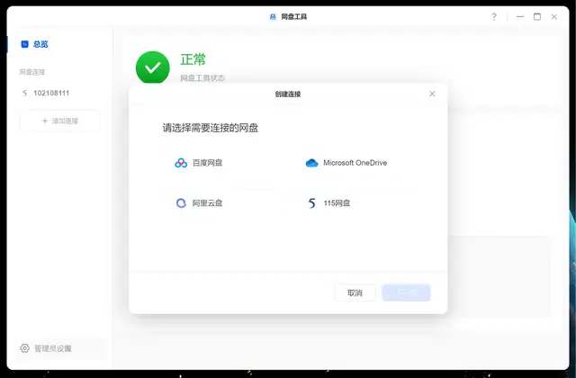 4、同步网盘素材,现在绿联支持百度网盘、阿里云盘、Microsoft OneDrive、115网盘,都是常用的网盘,这点很好。