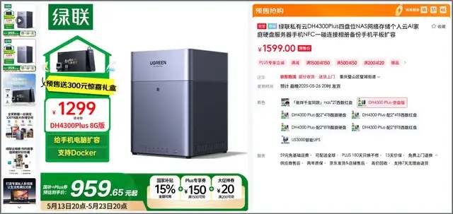 要知道这台NAS原价可是1599元的,然后618国补+Plus券叠加后也要959元!现在只要382元了!