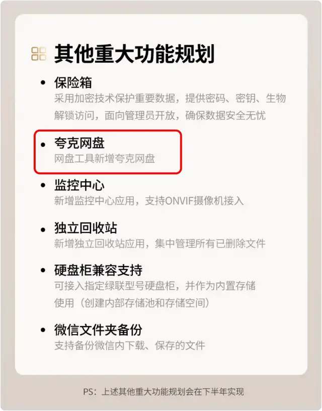 另外值得一提的事,大家比较关注的夸克网盘计划会在今年下半年上线,目前该计划已在绿联的产品详情页公示。