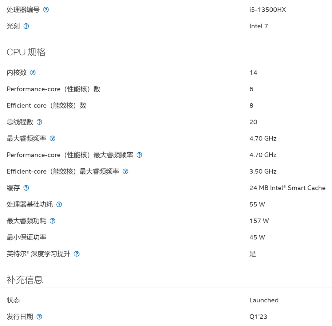 这颗Intel酷睿处理器,发布于2023年,Intel 7工艺,6P8E共计14核20线程,