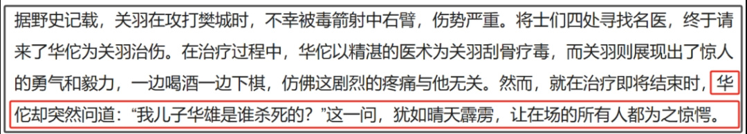 大夥都知道《三國演義》裏“溫酒斬華雄”的典故,你這個華雌和華雄一雄一雌,合理推斷華雄也得和華佗有點關係。