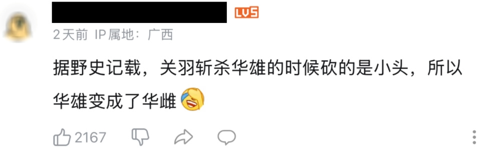 破案了,當時關羽砍的其實是華雄的小頭不是大頭,所以華雄就成了華雌。