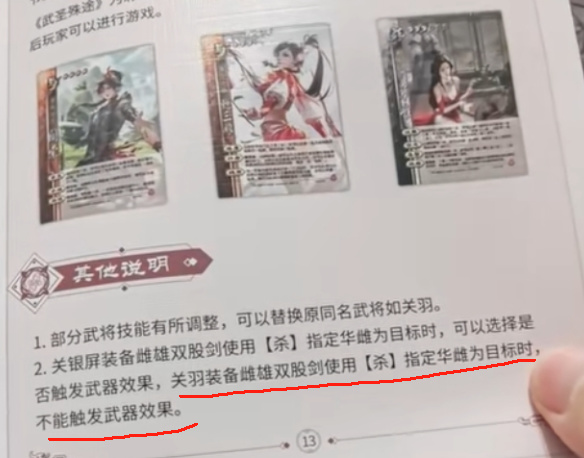 根據說明書記載,三國殺世界裏的關羽無法對華雌觸發雙股劍效果,這下坐實了在關羽眼裏這人就是男的華雄。