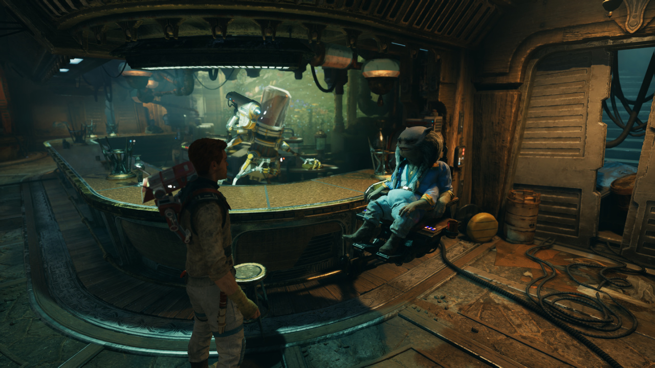 目前絕地系列兩作的劇情,在我看來,在迪士尼接手後的劇集中也算是上游的存在,比《歐比旺》、 《波巴費特之書》還有後傳三部曲要好,沒有過分地以不合適的形式植入美式政治正確元素,沒有塞進讓人覺得低質的俗套套路劇情,就只是紮紮實實地塑造人物,講一段故事,這就很難能可貴。遊戲劇情節奏合理,氣氛的烘托、情緒的遞進非常到位,再加上玩家是在相當長的時間中扮演角色,使得遊戲比起影視劇更容易讓人產生代入感,在我看來這讓我和遊戲人物的聯繫以及對其命運的關心比起影視劇來更加深入。
