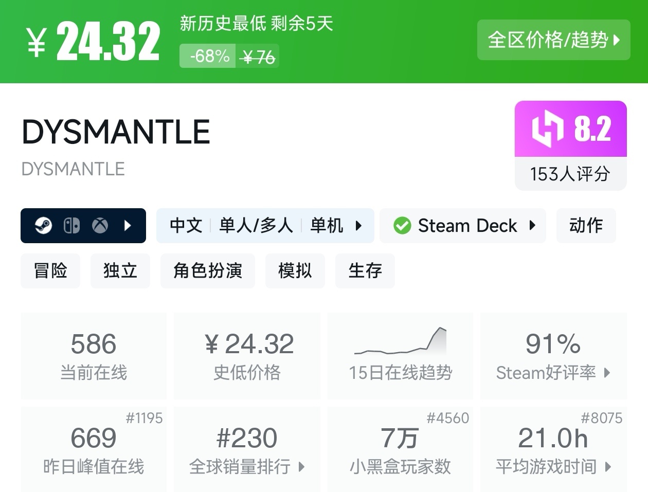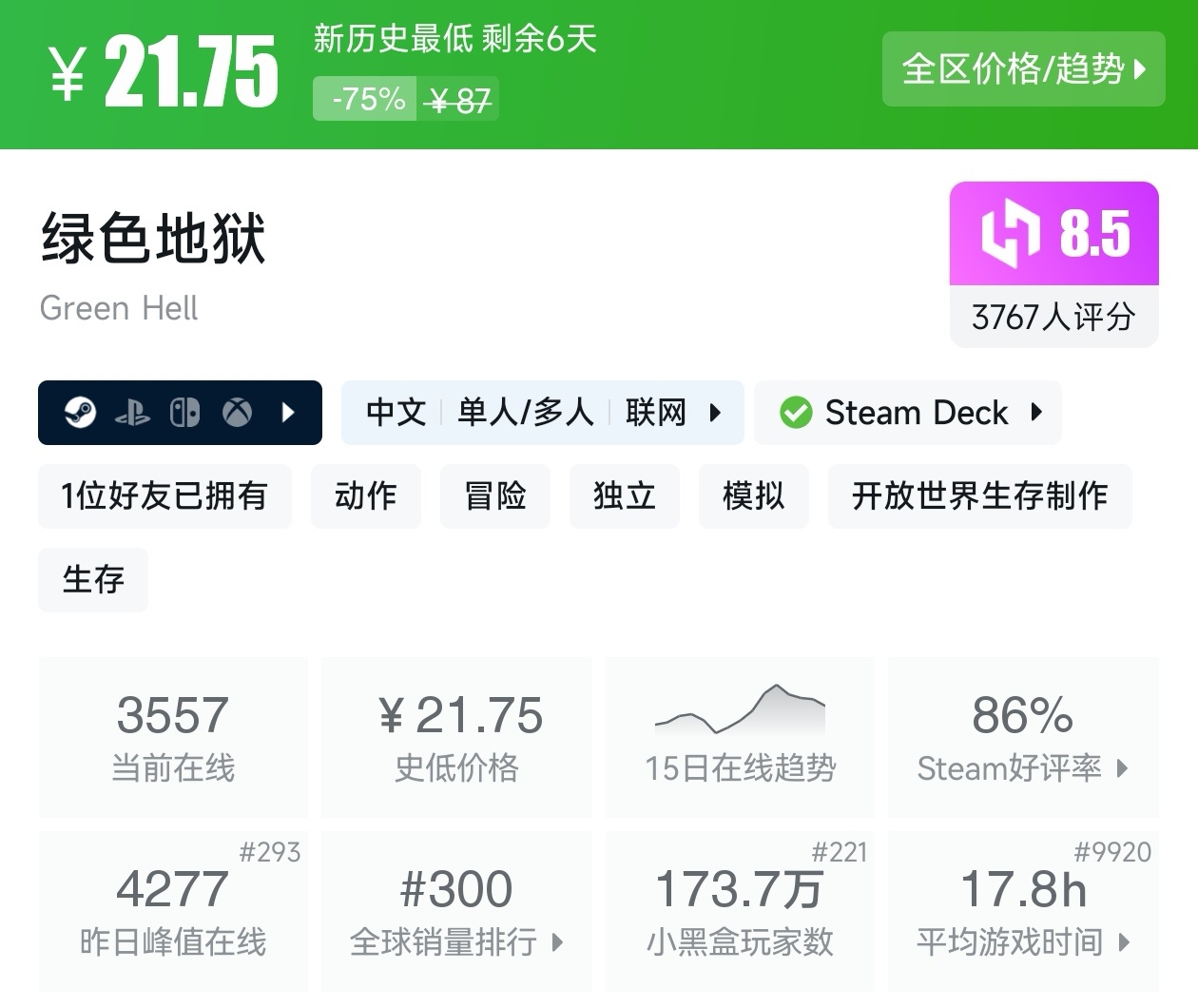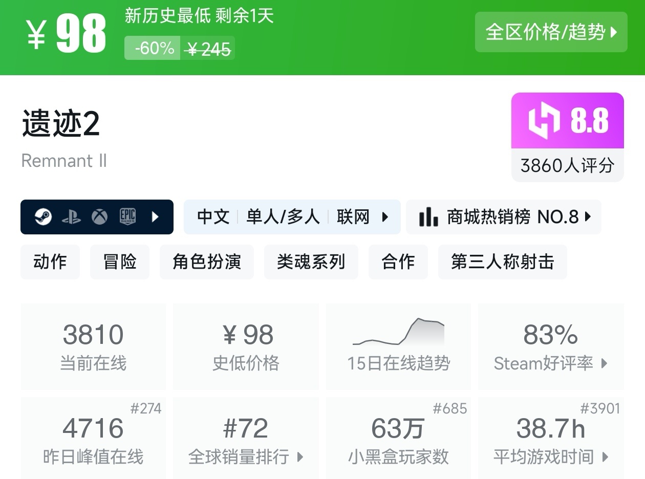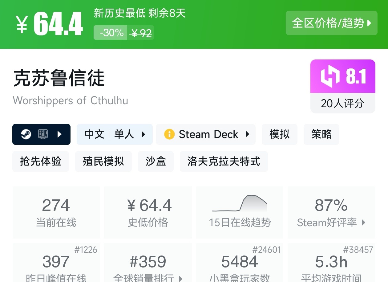 大家好,沒錯,又是我,你們的老朋友亦然,最近相信大家都知道,就是Steam殭屍和吸血鬼遊戲節了,那麼在遊戲節裏面有沒有新史低遊戲呢,有的兄弟,還很多,其實新史低買起來最有安全感,在很長一段時間裏都不會更低,我將爲各位進行一個彙總,希望我的彙總,能夠幫助各位盒友挑選心儀的遊戲。