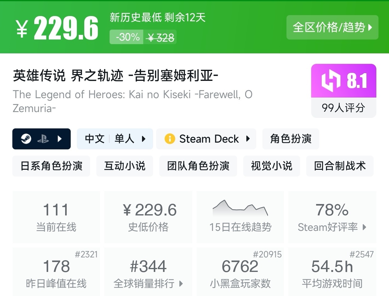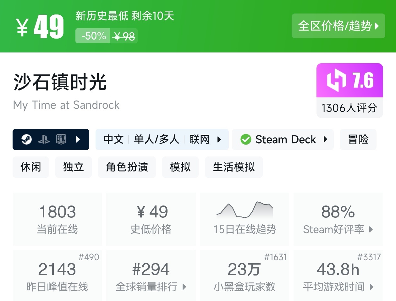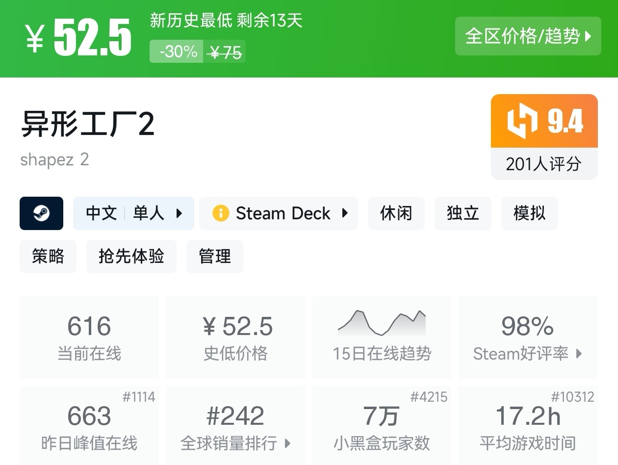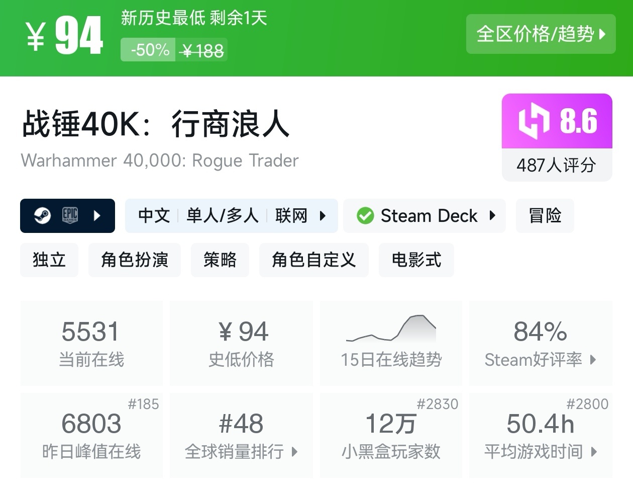 大家好,沒錯,又是我,你們的老朋友亦然,最近相信大家都知道,就是Steam殭屍和吸血鬼遊戲節了,那麼在遊戲節裏面有沒有新史低遊戲呢,有的兄弟,還很多,其實新史低買起來最有安全感,在很長一段時間裏都不會更低,我將爲各位進行一個彙總,希望我的彙總,能夠幫助各位盒友挑選心儀的遊戲。