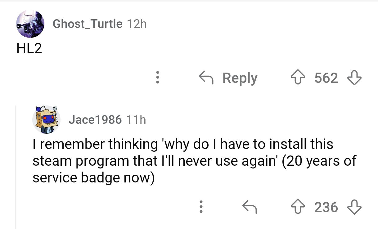 我记得当时在想:“为什么我非得安装这个我以后永远不会再用到的Steam程序啊”(现在已经有20年服役徽章了)