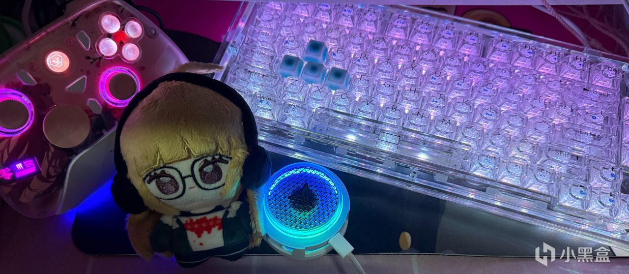 PC键帽:透明度极高!搭配上键盘的背光直接拉满,推荐和透明键盘搭,但其表面硬度低,容易刮花。