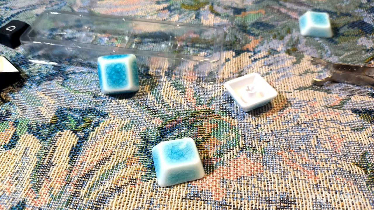 以及我最近入手的陶瓷键帽,几乎完全抗打油和磨损,抗脏也是拉满,仅需拿纸巾轻轻一擦拭即可。表面光滑如釉,触感冰凉细腻,拥有类似瓷器的高级质感,并且你将键帽放在手上把玩时,还会有类似围棋棋子相撞的声音,相当好听那么有朋友就要问了,陶瓷是不是很容易碎?我想可能是吧,但这也分用料。