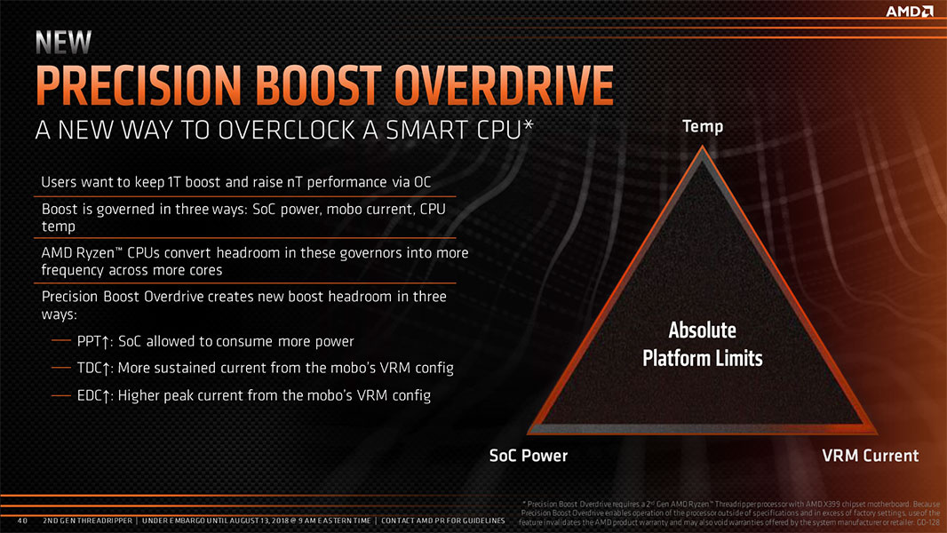 PBO 技術即 Precision Boost Overdrive,中文爲精準加速超頻技術,是 AMD 爲其 Ryzen 處理器設計的一種自動超頻技術。該技術可動態調整處理器的功耗與頻率、智能分配核心負載和優化散熱管理,目前技術已經來到第三代,進一步優化了性能和能效的平衡。