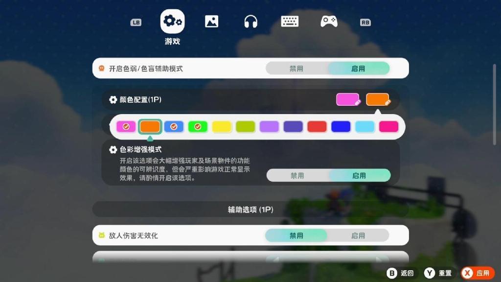 由於色彩是整部遊戲的基礎,爲了讓大家都能暢玩,提供了色弱/色盲模式,如有需要的話還準備了大幅提高辨識度的色彩增強模式,還可以固定你的人物配色,避免在默認情況下每關的換色給你看暈了。