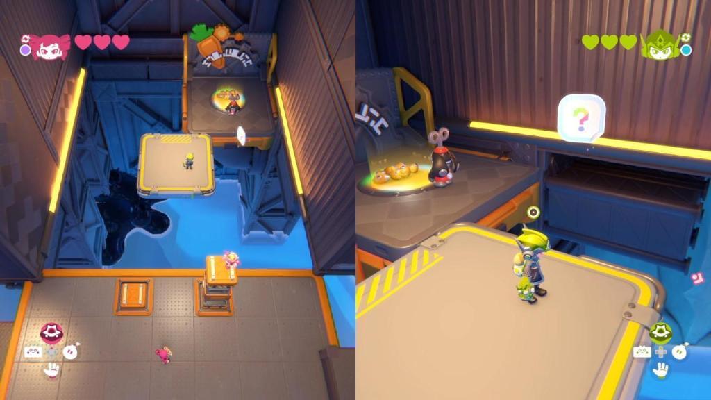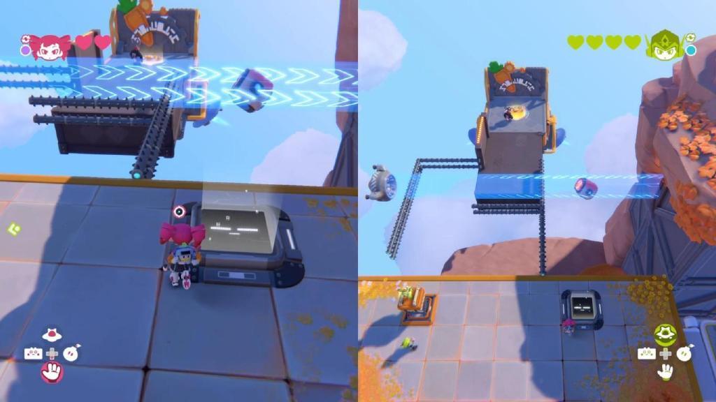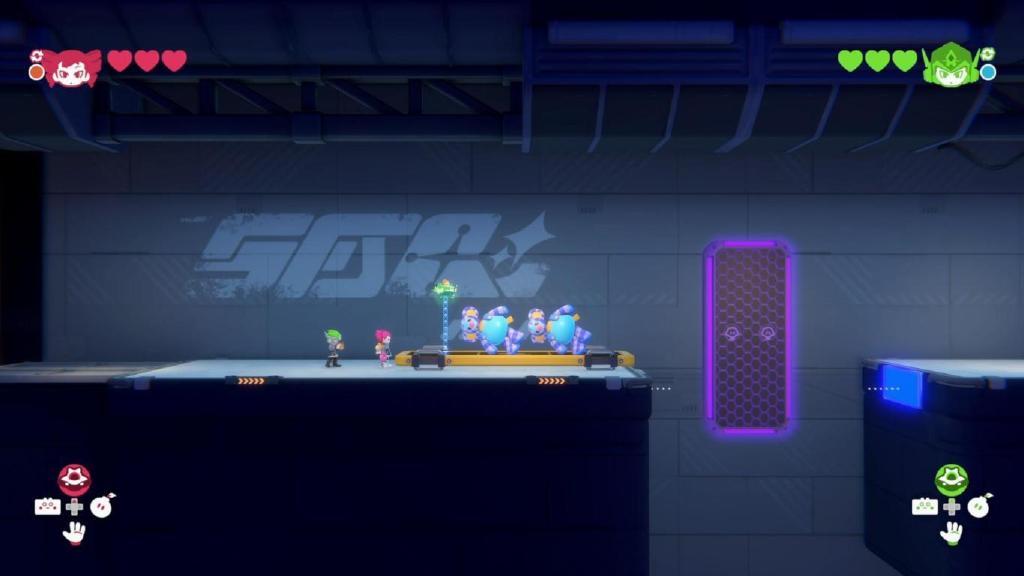 圍繞這四種能力,製作組想出來了不少有趣的機制,比如架起盾牌讓隊友通過危險區域,比如通過磁力手套來移形換影,比如讓無人機來遠程觸發機關等等。每一關都有一個核心謎題,製作組會圍繞着它來進行本關的地圖設計,而難度增長是循序漸進的,這個核心謎題會在關卡初期直接給你個寶寶版作爲教學,隨後逐步提高難度讓你理解這個謎題的核心邏輯,之後再上一些強度,讓你和夥伴的通關路上略有挑戰,但還不至於卡關。