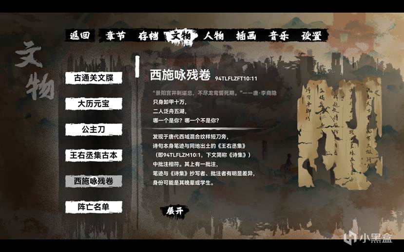 遊戲中專門存在查看文物的功能,不僅存在於劇情中的隻言片語,玩家可以在收藏中隨時查看自己感興趣的文物並且學習背後的歷史