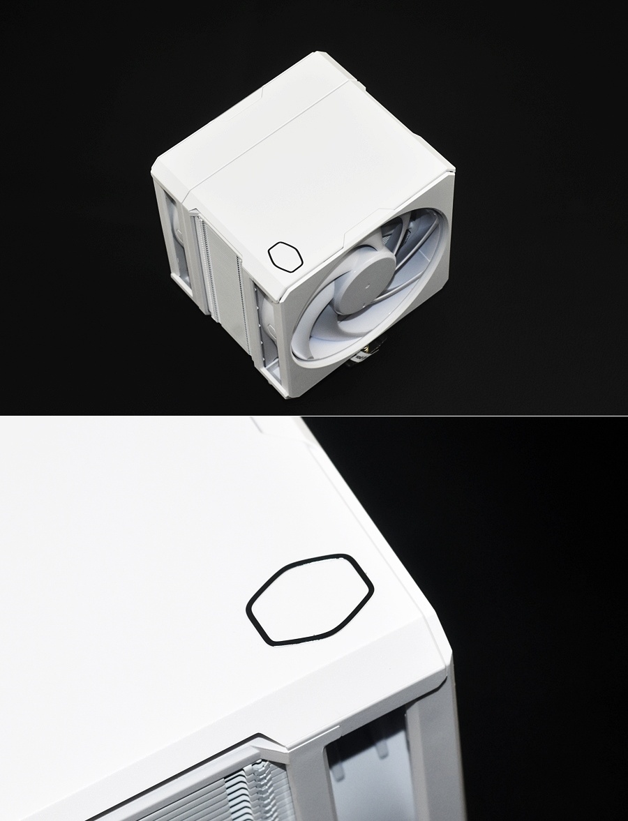 酷冷至尊HYPER 612 APEX WHITE塔身的頂部與塔身側面特寫。