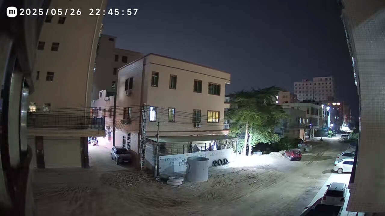 夜視模式下畫面也是全綵的(因爲我開啓了全綵模式)。當檢測到畫面變化或光線不足時,會自動開啓白光LED燈,夜晚的畫面依然是彩色的,而且非常清晰。這樣的畫質表現,完全不需要選擇黑白夜視模式。