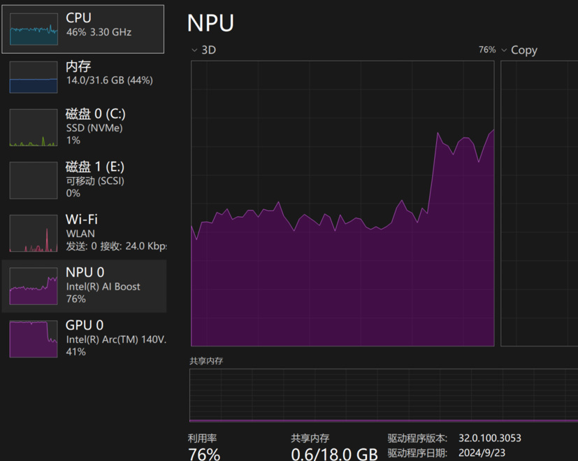 我在入手Lunar Lake笔记本后,还兴致勃勃搜了一圈“如何把NPU用起来”,结果败兴而归——现阶段极少有软件对NPU做过适配优化(可能国外电脑中的Copilot可以调用NPU,有了解的朋友欢迎评论区分享一下),总之空有数据没有战场,也难怪外界对AI PC的唱衰之声不绝于耳。