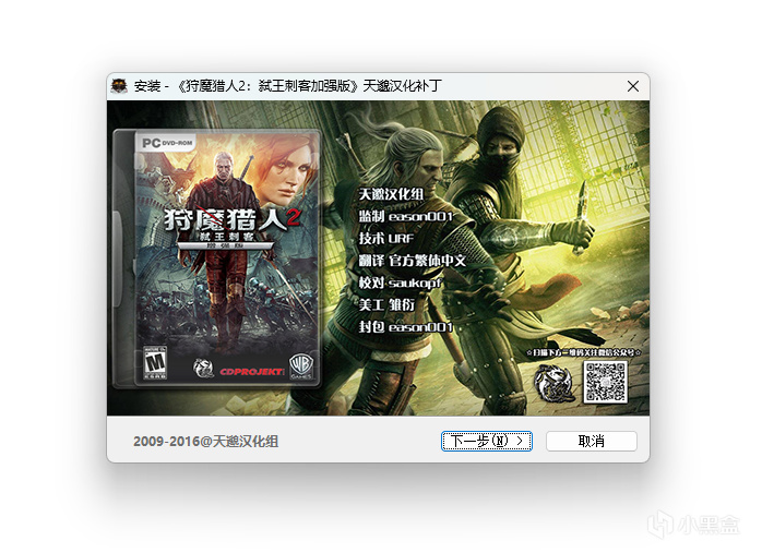 但巫師2的繁體文本不太好看,隨着分辨率增加還會變小,建議使用簡體漢化,複製TW2CNv1.1到遊戲根目錄並運行,完成簡體中文漢化。