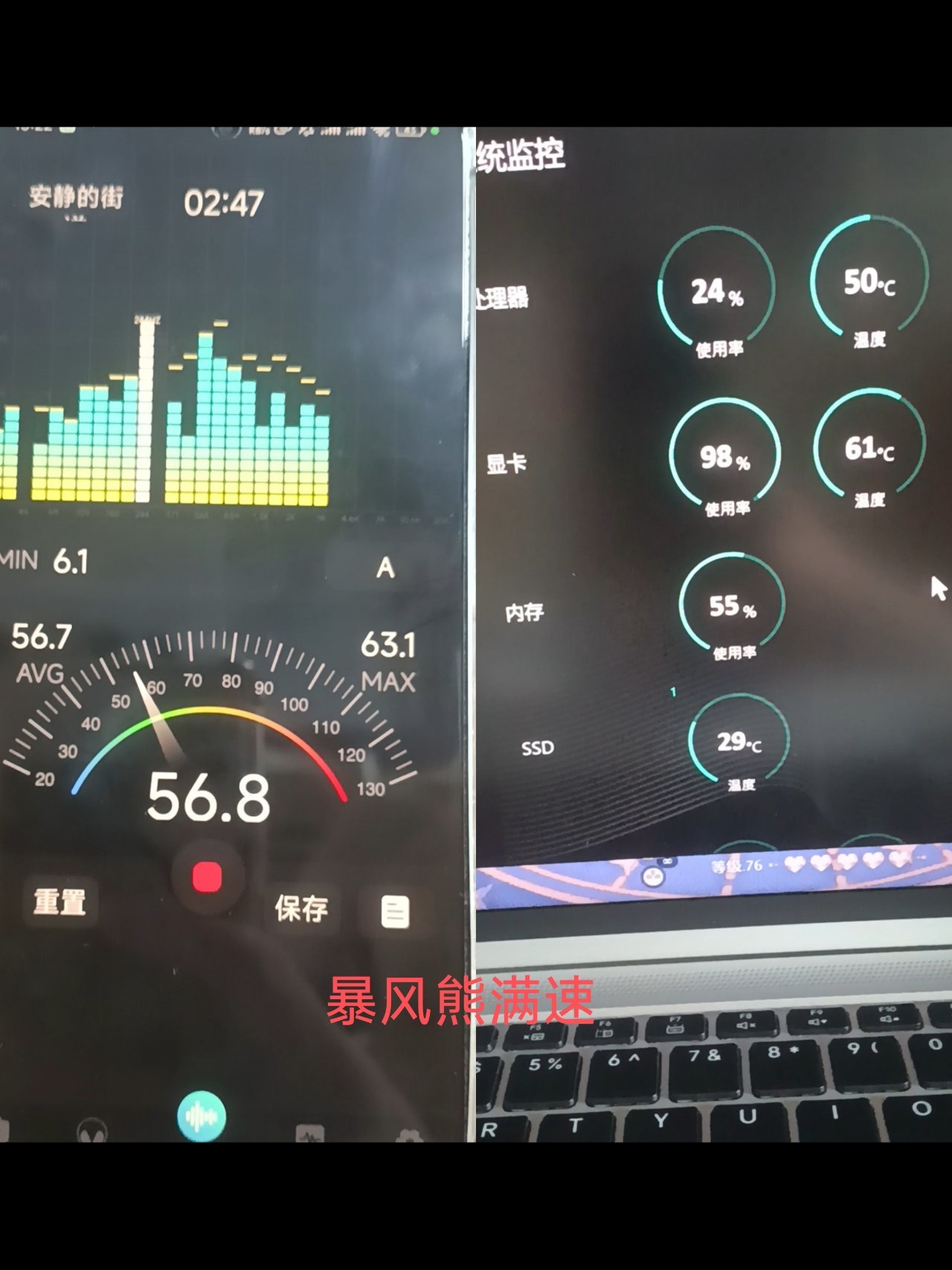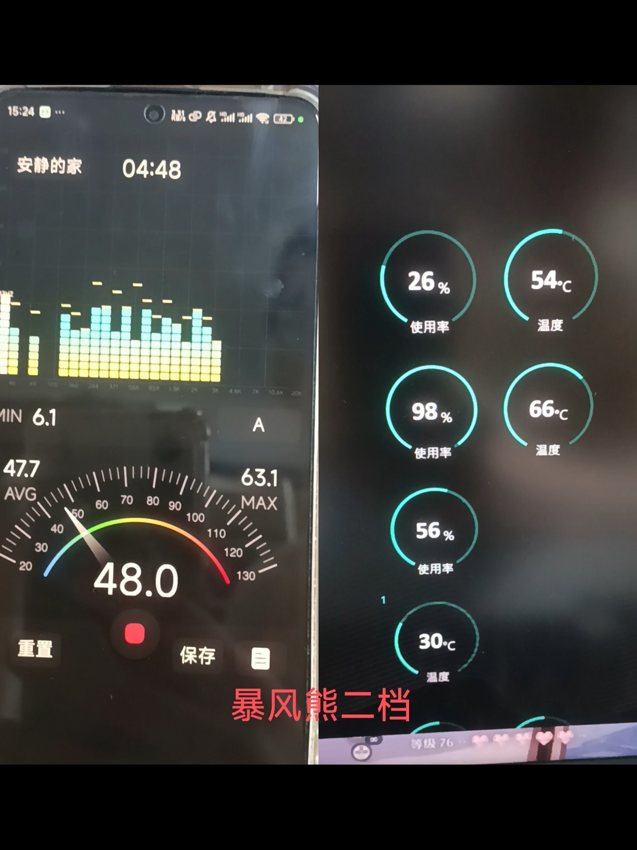 4.尽管二档测得噪音数值一样,但可能因为转速高,我听感总觉得暴风熊声音相对尖锐一些,带耳机也不太能盖住。