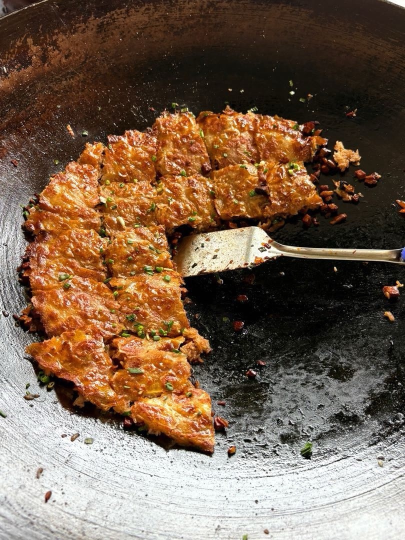 ★呐,如图所示,豆皮只是上面一层,底下还有锅巴米饭,我看店里其他人都是点一份这个当主食吃。味道不错,咸咸的,有点酥脆,但大河真的吃不下了,只能浪费了!