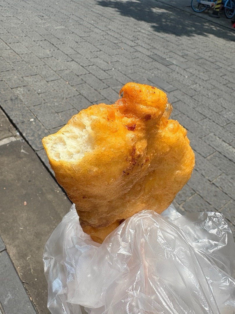 ★大河其实已经吃饱了,甚至上面那些都没吃完,但为了品尝特色还是买了一个,这个东西闽南那边也有,但名字不一样,普通话大河不知道叫啥,味道和面窝差不多。