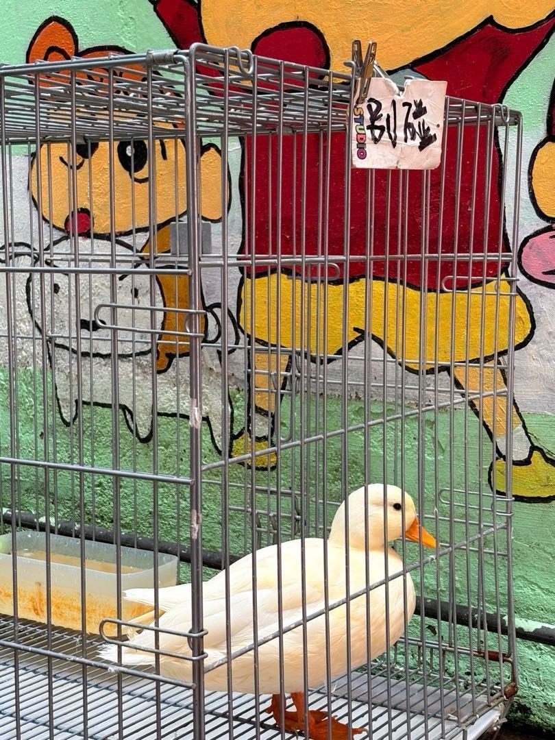 大河第一次见到现实中的柯尔鸭,好傻好胖,但是做鸭脖应该没销路,因为没脖子