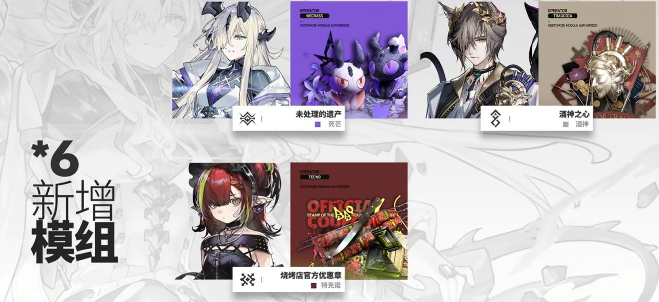 阿斯卡伦、山和多萝西二模。阿斯卡伦的参考水月,变成65%闪避,强化2天赋的攻速。山的应该是加15物理闪避,再配合天赋加防加闪避,生存向模组,多萝西的和费用相关,应该是减少地雷费用或者爆炸返还费用。