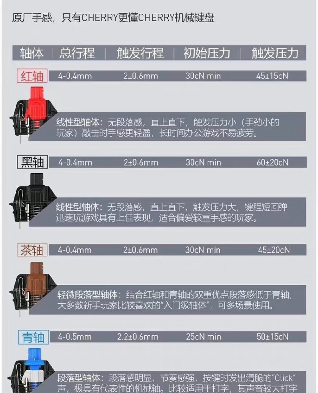 軸體名字是營銷,咱們還是關注參數,多試多比。也是希望大家最終能選擇到最適合自己的機械鍵盤的軸體啊。