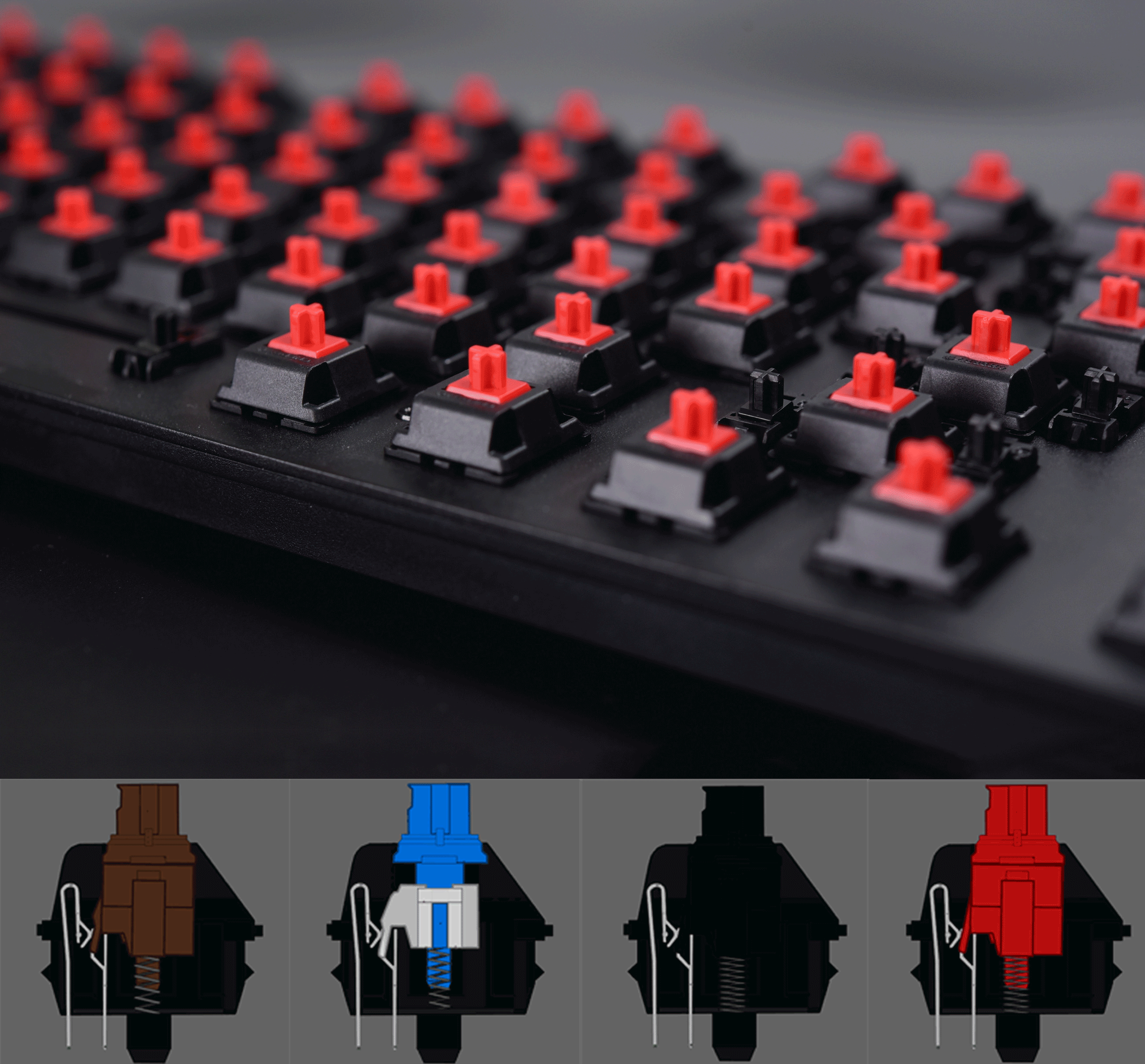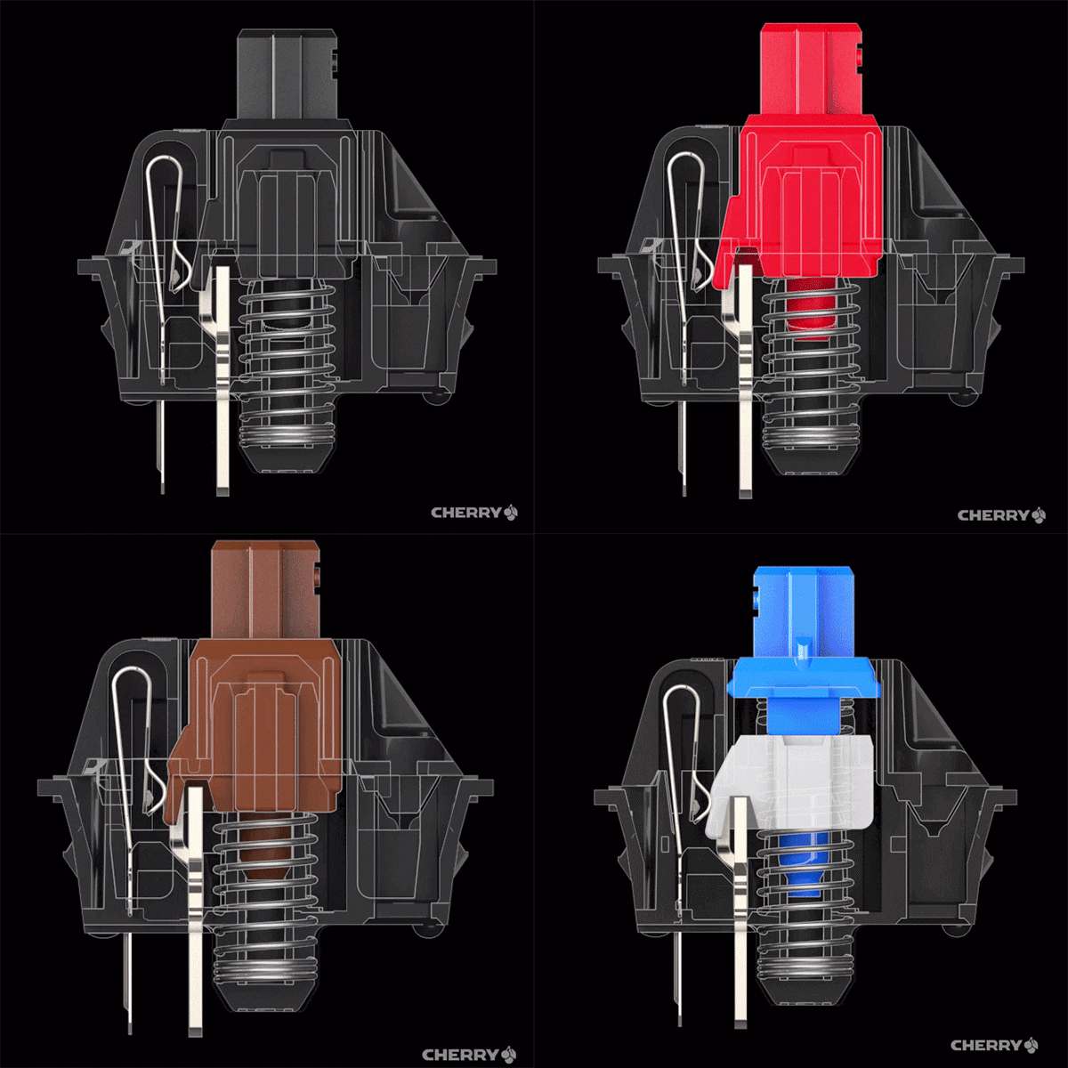 而經典櫻桃軸體系(紅、青、茶、黑、銀)正是基於這原理和軸體按壓軟硬的部分參數差異,用顏色進行簡單直觀的分類,統治了市場多年。