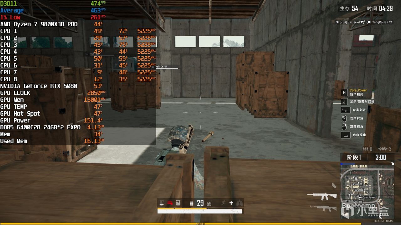 影锋DDR5 6400C28 48GB 手动超频平均帧率为463fps,1% LOW帧为261fps
