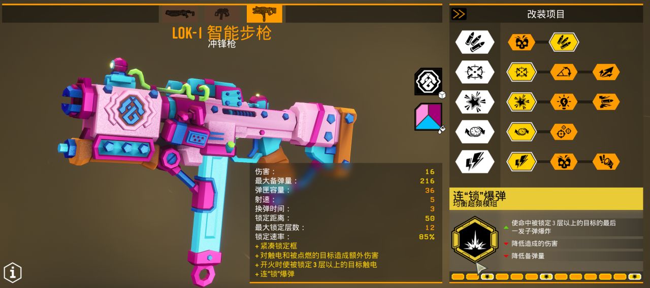 除了不同职业的区分,主武器副武器也各有3把可供选择,玩家们可以随着游戏进程解锁自行搭配,武器除了常规的加点升级外,每一把武器还搭配了6-8个不同的武器模组,绿色模组一般给你的武器带来一些基础的数值提升中规中矩,红黄模组的存在往往会改变一把武器的使用方法,通过模组和武器加点的互补,一把武器可以有着不同流派的玩法,玩家们可自行探索尝试。