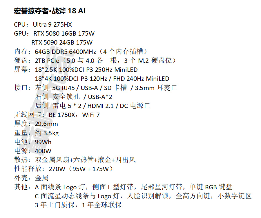 另一台则是新近上架的 宏碁掠夺者·战斧18 AI 2025