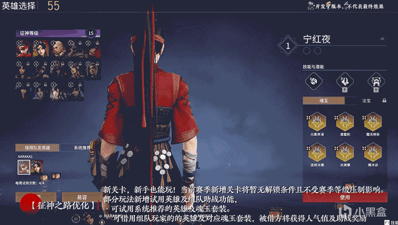 英雄選擇階段,可以試用系統推薦的英雄及魂玉套裝,或借用組隊玩家的英雄及對應魂玉套裝;被借用英雄的玩家還可獲得人氣值及相應的助戰獎勵,再也不用在世界頻道里喊着香囊帶徵神啦!!