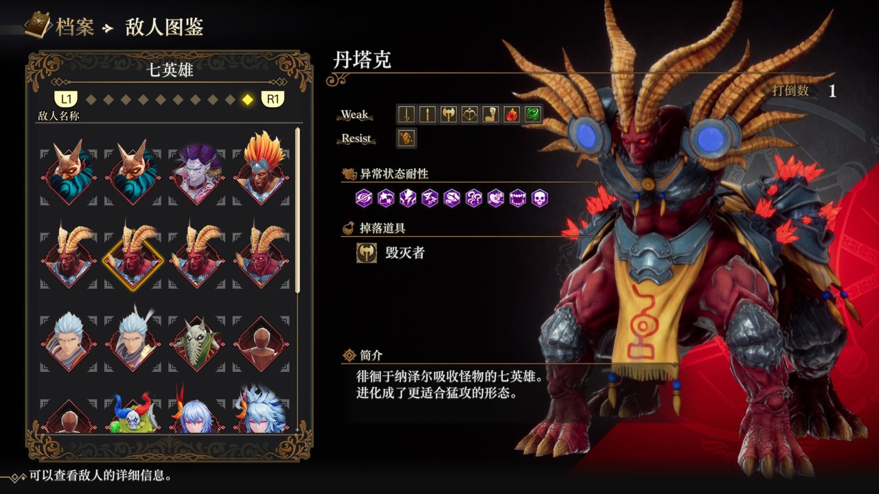 此時前往「東方迷宮」關底BOSS會遇到七英雄丹塔克(後簡稱蛋撻)第一形態,此戰建議故意輸給蛋撻,任務不影響依舊可以完成,蛋撻遊戲內共有五種形態圖鑑,會隨時間年代跳躍逐步進化,從三形態開始掉落唯一武器「毀滅者」該武器是多周目極難/浪漫開荒利器,所以現在擊殺一二形態的蛋撻是不掉落道具的,可以等他後面進化後再打併SL出他的武器。
