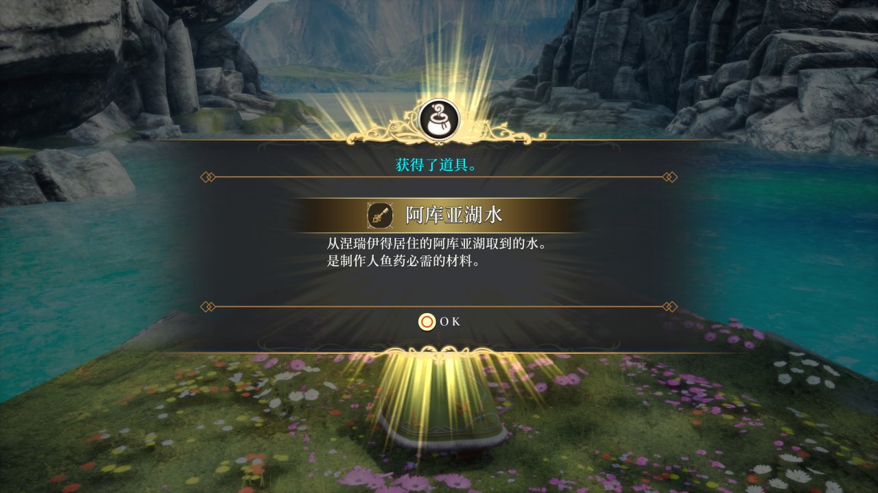 至此取得人魚藥製作的所有材料回到「魔女的祠堂」對話魔女製作人魚藥,之後前往「瑪魅朵」酒館後門在湖邊選擇喝下人魚藥。