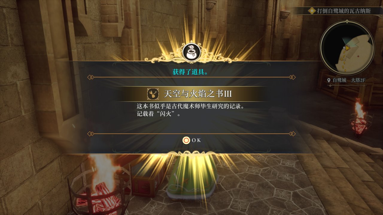 東方護衛加入後開啓新地點「白鷺城」接取任務並前往,在大塔2F取得重要合成魔法「閃火」在地圖城牆右下寶箱處獲得「掉寶戒指」拿完道具後關底BOSS建議不打,難度比較高之後再攻略(有自信可以無視此條建議)