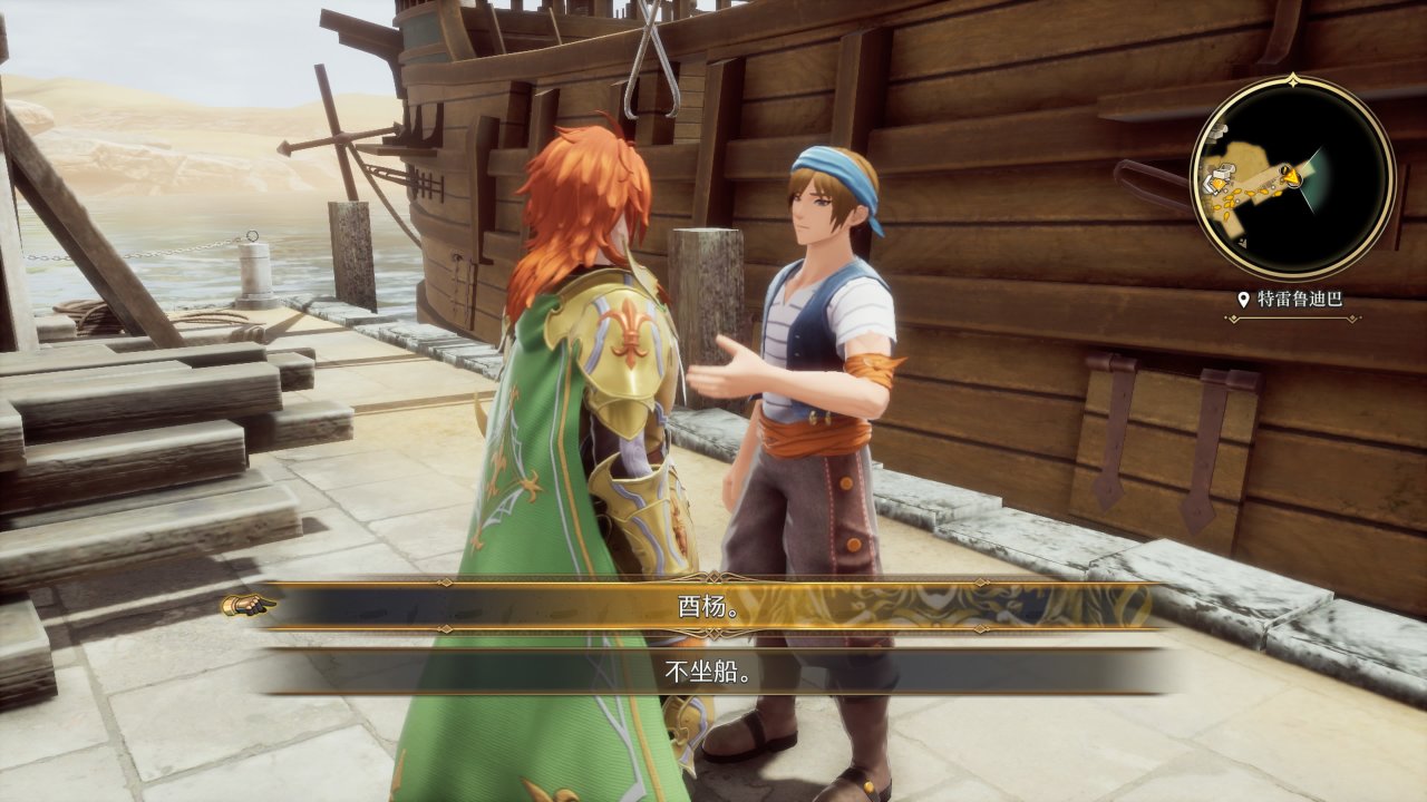 前往「梅魯沙漠西」後地圖東南幾個出口分別通往「梅魯沙漠南」和「梅魯沙漠北」可以先開了傳送點備用,到達「特雷魯迪巴」後同樣不要對話任何NPC觸發任務,只拿寶箱和老師,並由此乘船前往「酉楊」