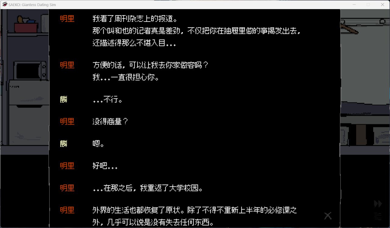 自杀线的麟,笔者认为最后是彻底崩溃了。抽屉里的剪刀和成就名应该暗示了麟的结局。笔者认为是可以理解的,毕竟哪怕审判冴子,也不该麟来做。