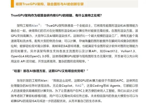 礪算科技表示,在GPU芯片領域,自主研發架構是一項極具挑戰性的任務,但礪算科技以驚人的毅力和創新精神,成功打造了擁有全自有知識產權的TrueGPU架構。