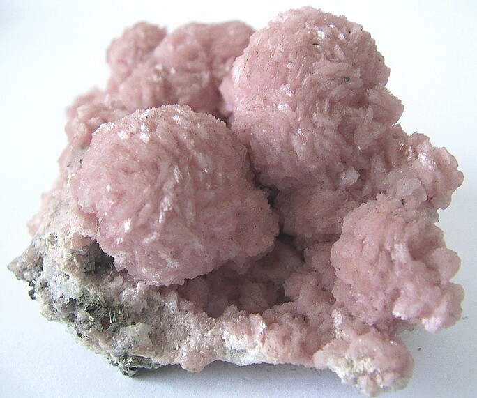 菱锰矿(Rhodochrosite) 是碳酸盐矿物的一种,属三方晶系,硬度在3-5之间。菱锰矿的英文名称来源于两个希腊语单词:Rhodo(ῥόδον, rhódon)和chrosite (χρῶμα, chrōma)。前者意为玫瑰,后者意为颜色。因此,Rhodochrosite可以译作“玫瑰色的矿物”。