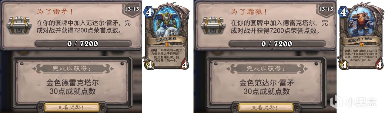 這兩張卡現在在狂野基本使用不太到了,而且這兩個成就都比較麻煩。新玩家有餘力的話可以去做,不然的話就等以後這兩張卡重新被用到的時候再去做,畢竟這種特殊機制的中立橙卡難說哪個版本又會被救活了。