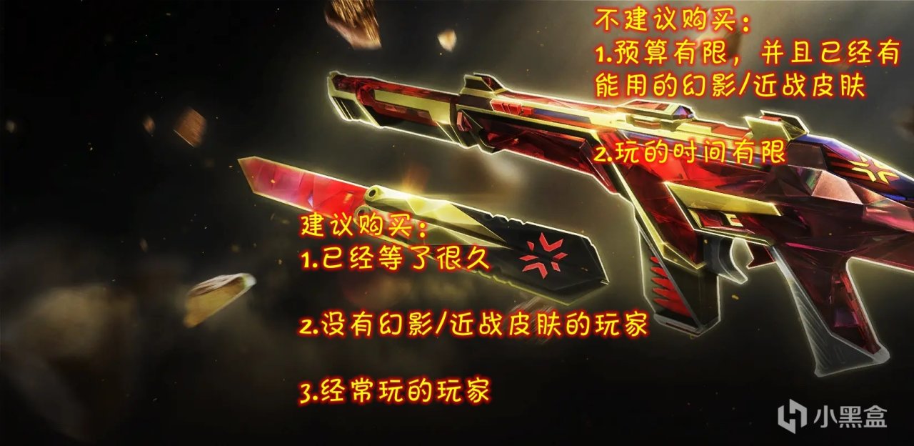 購買建議方面,首先說說那些人羣不建議購買,如果你預算有限,並且擁有了喜歡和夠用的幻影以及近戰皮膚,對這套皮膚也沒那麼喜歡,那就沒必要自我洗腦去創造需求,再怎麼限定也只是一套皮膚而已,世界上限定的東西多了去了,難不成都要買嗎。