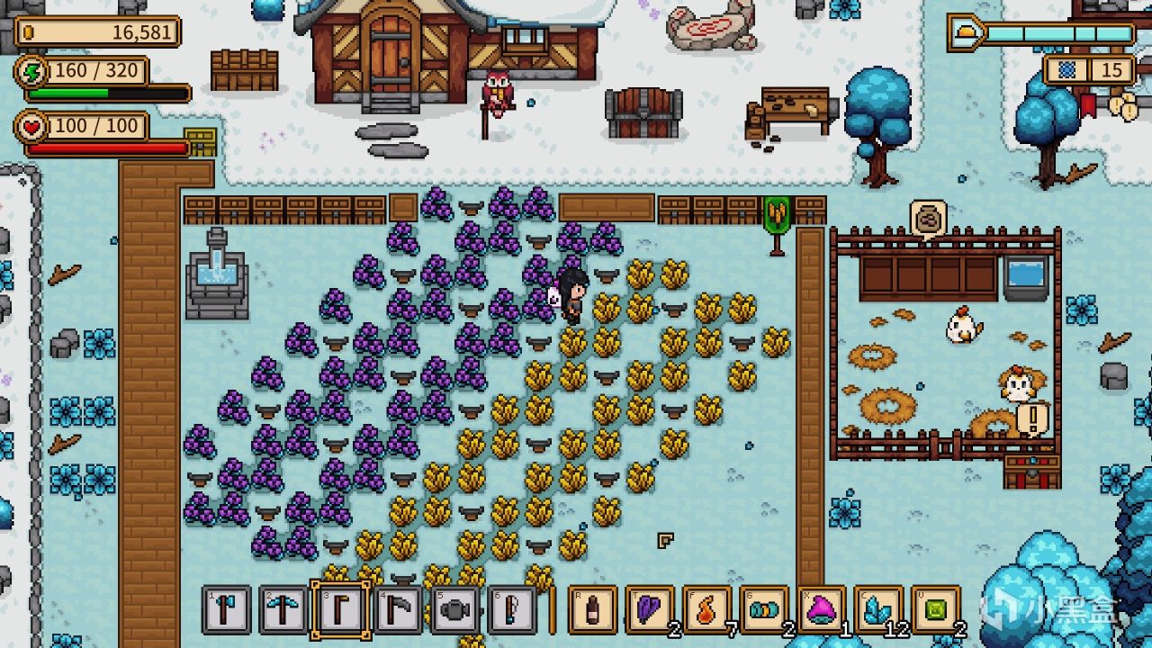 而种田在游戏当中算是主要的输入来源,我原本以为和星露谷一样,钓鱼也可以快速致富,但是后面发现远远不及大规模种植给的多!