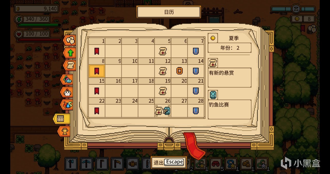 刚进来游戏,我看到图鉴和日期规划,我直接就断定28天一个季度了!再猜想一下有没有节日呢,一看,果然有节日!我相信这是新手进入游戏最喜欢的事情,第一次参加节日往往都是非常期待的!