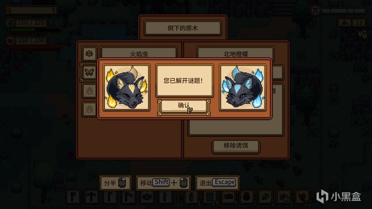 虽然在《希望物语》不能放置蟹笼,但是在《希望物语》可以诱捕昆虫,并且还附带猜谜语环节!在游戏中我们可以看到两只狐狸会出现在木桩上面,提示我们用对应的诱饵来捕获昆虫!