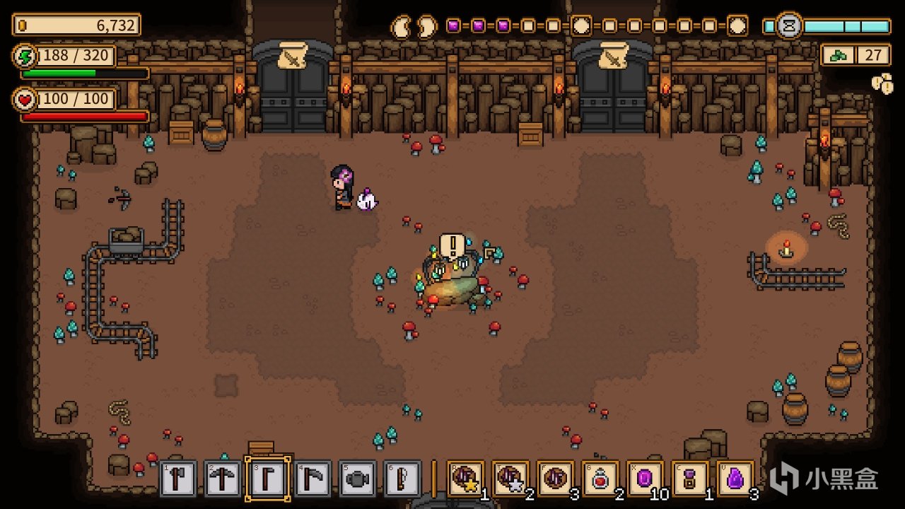 与传统玩法完全不同,每个地下城会有10个关卡,而关卡并不是简单的战斗和采矿,会出现猜谜语捕捉虫类、钓鱼、采矿这种奖励层。