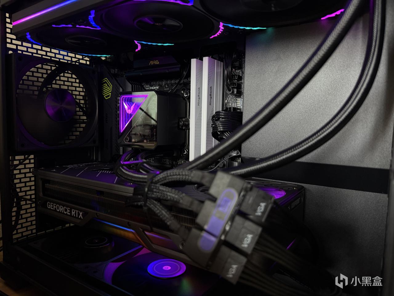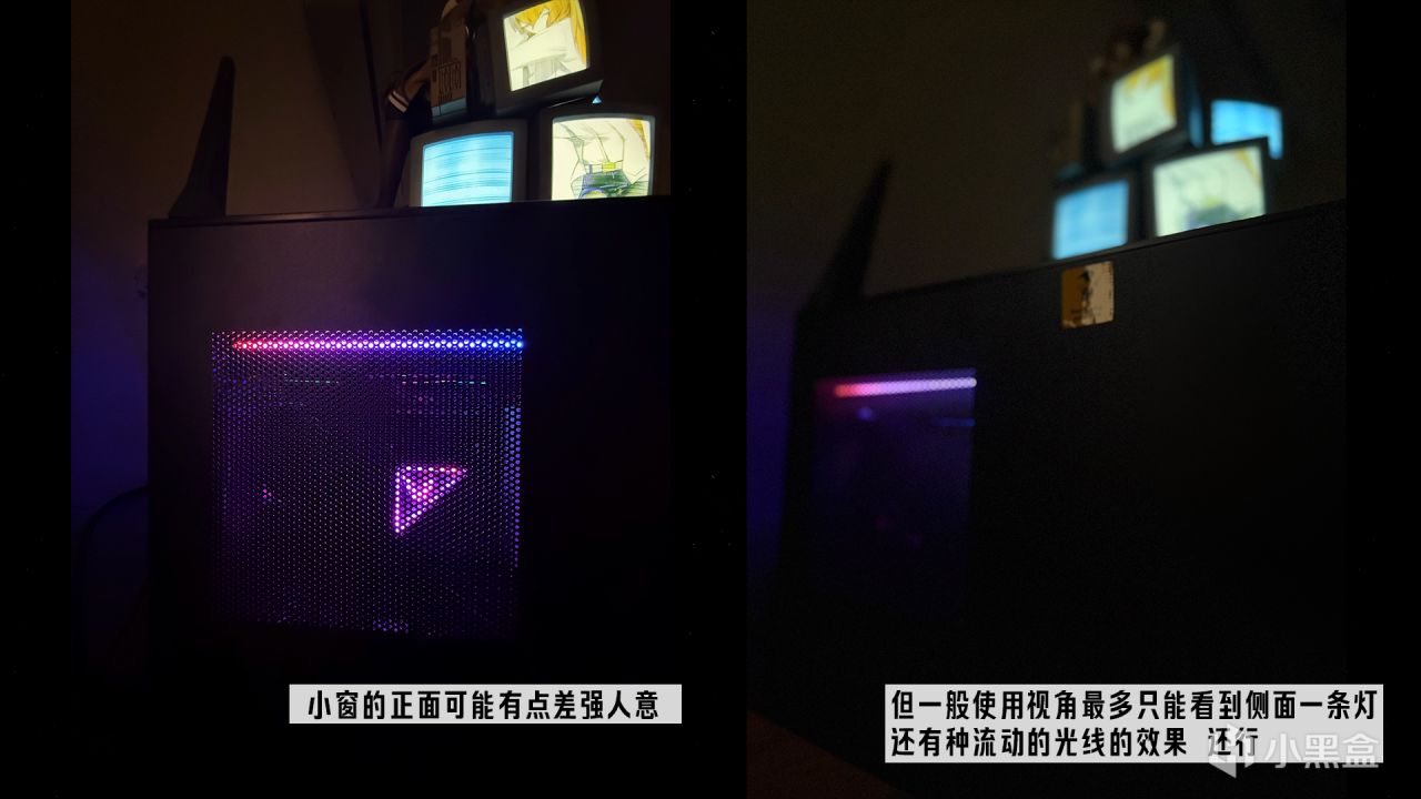 退掉风冷之后便直接选择了瓦尔基里v360水冷的方案,直接打破了原本无光的计划,于是机箱一侧的mesh小窗多了一点光效。最后一次点亮!