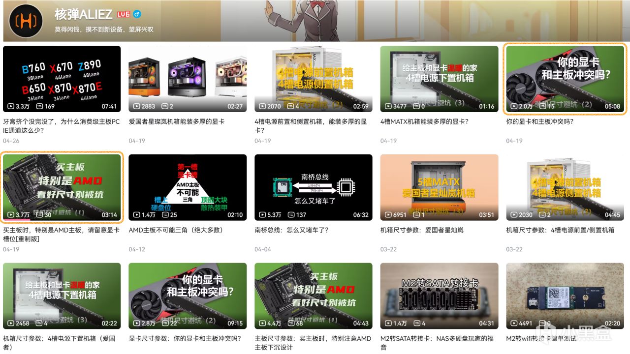 ⭐尤其要注意的是兼容性问题,做主板推荐与评测内容的博主有很多,但做兼容性关注的博主是比较少的,这里我首推UP主【核弹ALIEZ】,频道内有很多实用的有关主板和机箱的避坑实用讲解,能够帮助你在选购前期做好更多的准备,减少不必要的换货和掰扯。