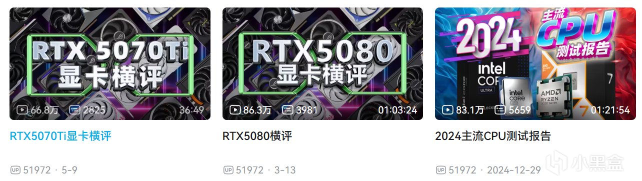 显卡选择方面除了各大头部博主的针对性的性能测评外,首推UP主【51972】的5070Ti&5080系列横评,对于想要中高配置需求用户有较大的参考意义,能够帮助综合多个维度(性能、散热、用料等)去选择最适合自己的中高端显卡。