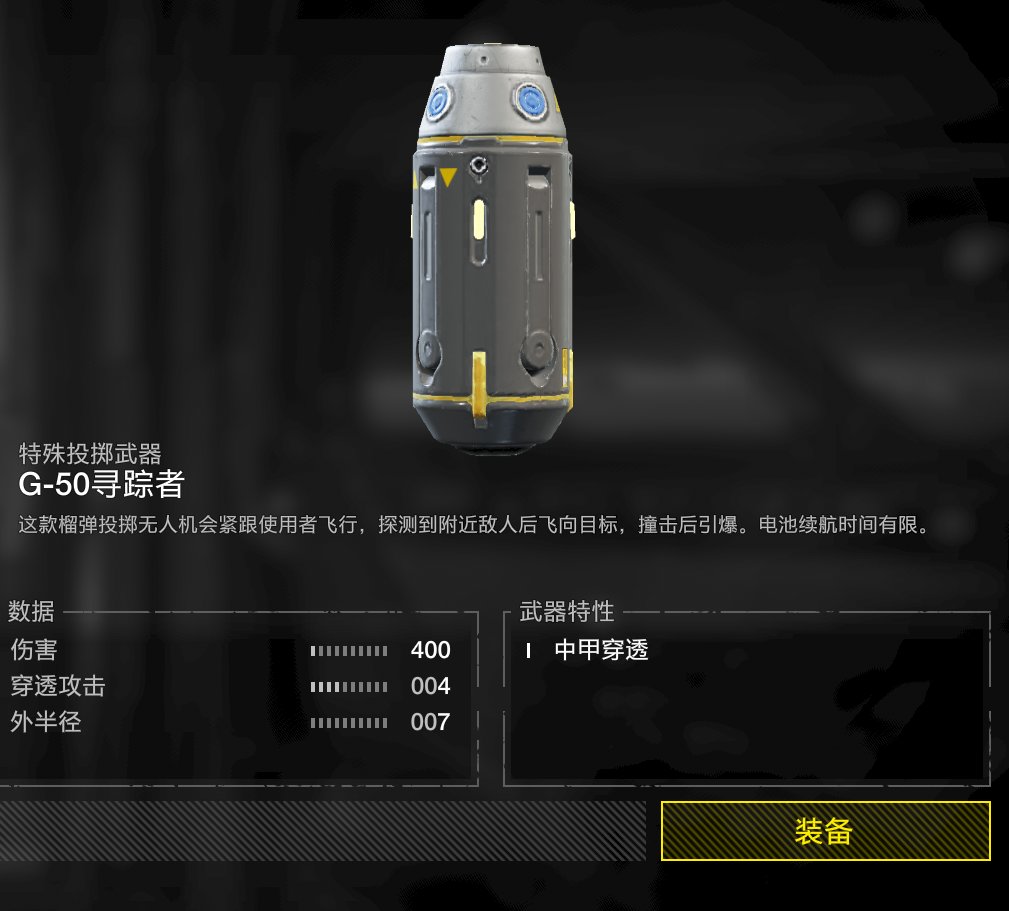 追蹤雷,丟出去後會自己尋找目標進行自殺式攻擊,如果沒有目標30s後自動墜機,說實話沒什麼就業面,能拿來炸炸炮艇。