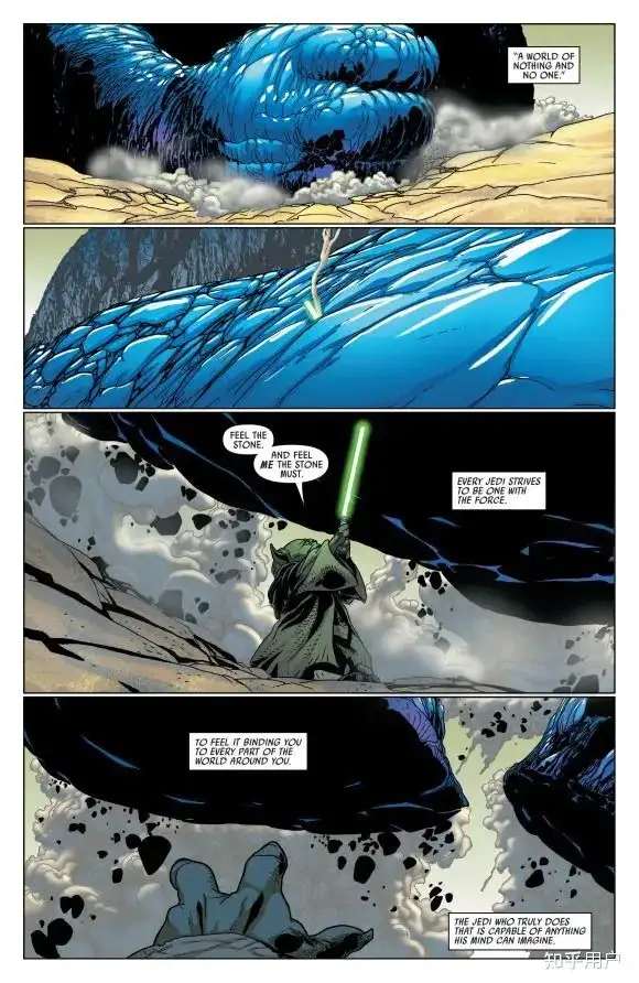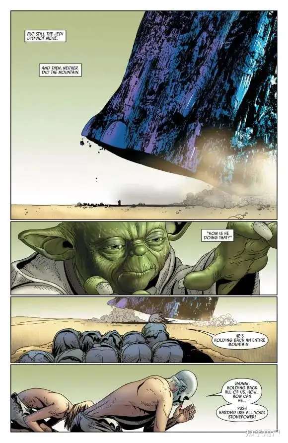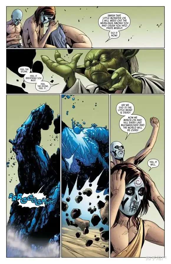尤達大師在新正史漫畫《尤達的祕密戰爭》中能單獨對抗諸多山一般龐大、能震裂大地以及靠吼叫將小行星通過震動推離軌道的石巨人;